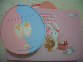 実は現在では、おこわは男の子が生まれたとき、ケーキは女の子が生まれたときに準備するようですが、私たちは両方とも準備し、それに加えて、お菓子の詰め合わせも準備しました。