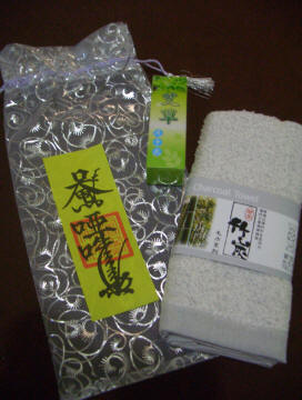 中にはタオル・ハンドソープ、そして、御札が入っていました。