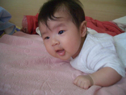 そこで、少し前から娘をベッドの上で日に数回うつぶせにさせていました。